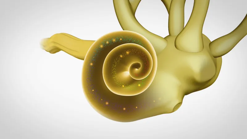 Кости среднего уха усиливают звуковые колебания и направляют их в улитку. Это заполненная жидкостью структура, которая расположена во внутреннем ухе и получила свое название из-за схожестью с улиткой. Верхняя и нижняя части улитки разделены эластичной базилярной мембраной. Эта мембрана служит основанием, на котором «сидят» ключевые слуховые структуры уха.